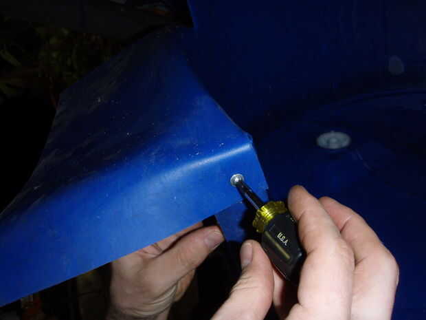 En la siguiente imagen, verás un tornillo que sujeta la parte superior del brazo en la parte delantera del brazo, es el momento de instalar eso perno. La fuerza del brazo en su lugar y perfore un orificio de 9/64" a través de ambas piezas. Enrosque el perno aunque y fíjelo con la arandela y tuercas.