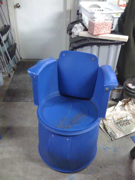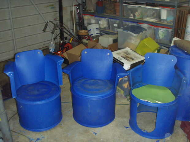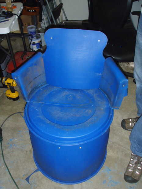 Hay que ir, eso es todo lo que necesita para hacer su propia silla cómoda de un tambor de 55 galones reciclado. Como se puede ver en la imagen de abajo es sin duda lo suficientemente robusto para el uso duro. Hemos llenado más de 400 libras en él ningún signo de debilidad. Las otras fotos muestran algunas de las variaciones que hemos creado, brazos superiores, un lateral falso, la base 'Santa' horriblemente mal. Todos ellos tienen sus propios encantos y peligros, pero parte de la diversión es la personalización. Hablando de eso, brillan para arriba muy bien con una limpieza de windex seguido por algunos Armor All o puede utilizar pintura de fusión para personalizar el color.