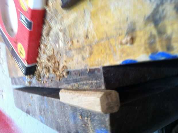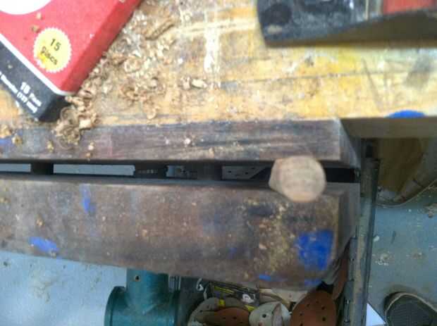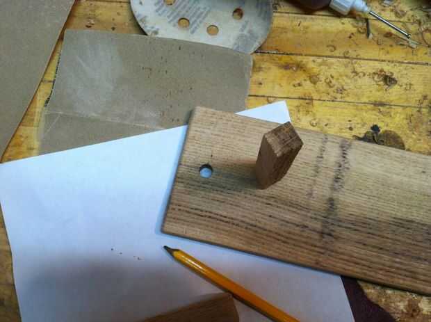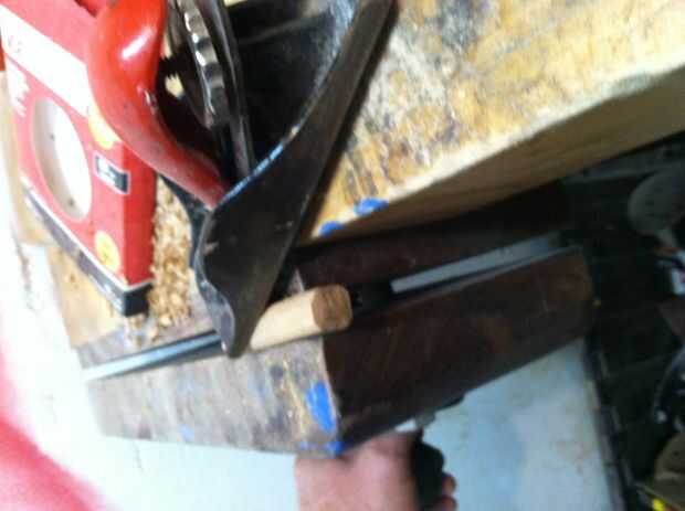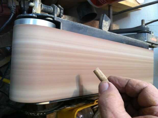 Utilicé mi plano de bloque a alrededor de la clavija y biselado del extremo con una lijadora de banda
