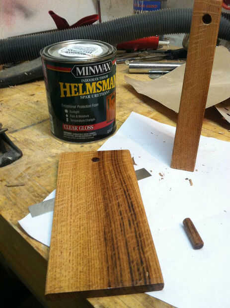 después de lijar usé pintura para barcos para llevar a cabo la figura en el roble. Usé 3 capas con un ligero lijado entre
