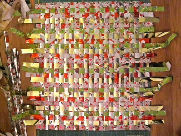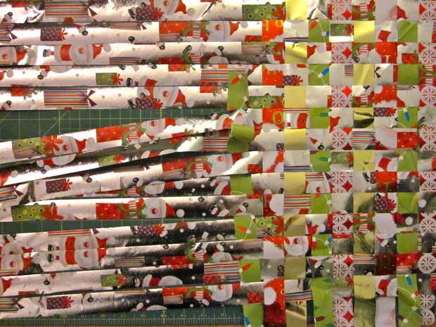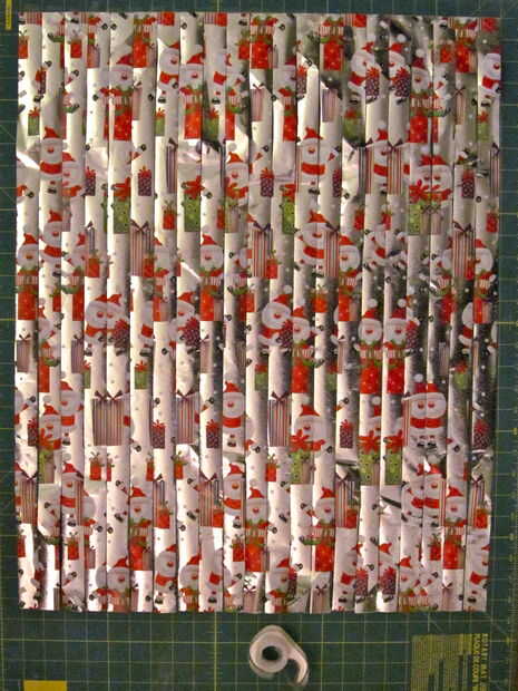 Alinear tus franjas verticalmente que tocan al lado. Cinta de un extremo a una superficie plana resistente.