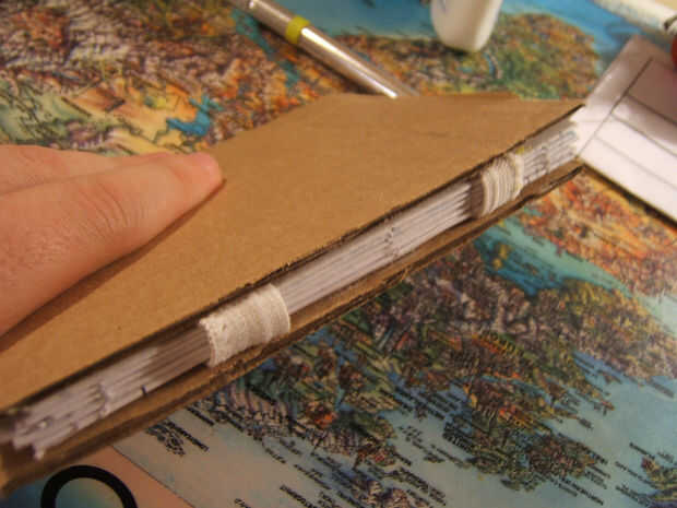 Agregar una gran cantidad de pegamento en una de las hojas exteriores. Un pedazo de cartón que se pegan.