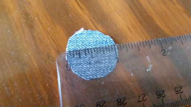 Comenzar con un círculo de diámetro igual a 1/3 de la anchura de la flor. Ya que hice una flor de 3 pulgadas ancho, corté un círculo de diámetro de 1 pulgada. Esto es sólo aproximado, por lo que no te preocupes si no es perfecto. También, su círculo sólo tiene que parecerse a uno, para que óvalos están bien también.