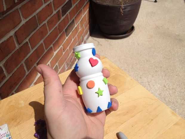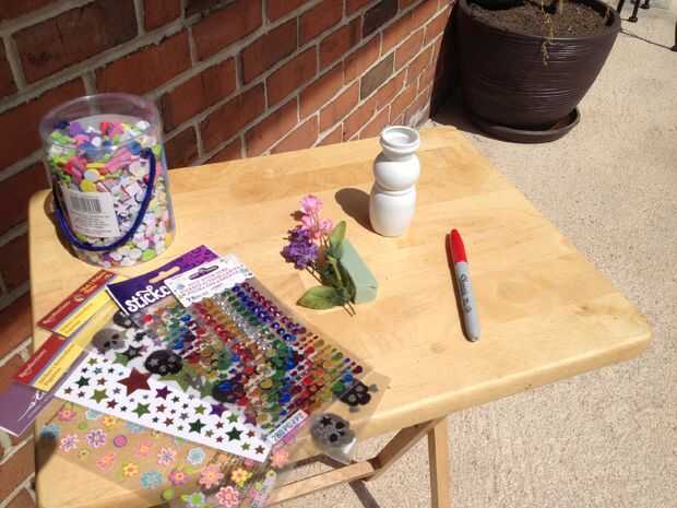 -Decorar los jarrones. Estamos dando los marcadores lavables de los niños, pegatinas de espuma pequeño y unas pegatinas llano (incluyendo unas pegatinas estereotipadas boy - ¿qué mamá no le gusta un cráneo con un rayo en la cabeza?) Si eres valiente, de sus hijos son se comportaron mejor que nuestras son, sentimos libres repartir las pinturas cartel demasiado.