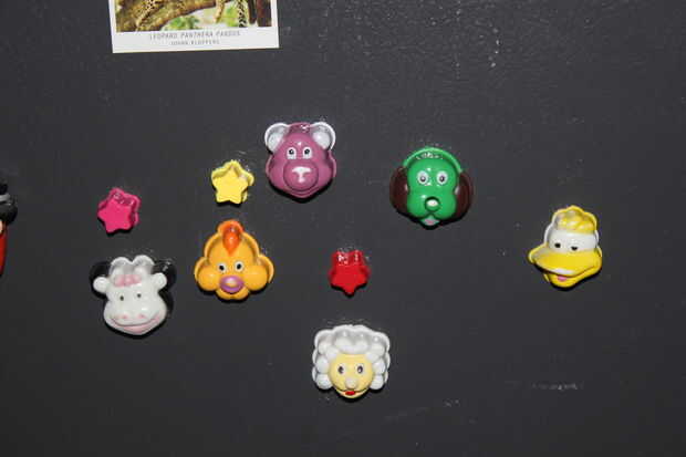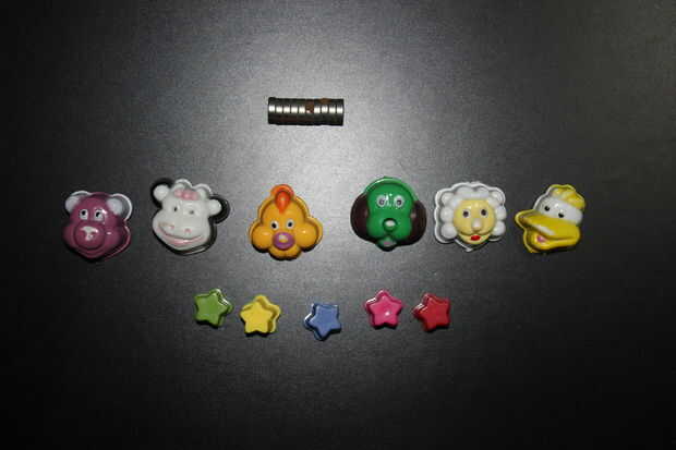 1) botones de pianos/guitarras de juguete roto. Mina tenía una guitarra y en forma de caras de animales y estrellas.