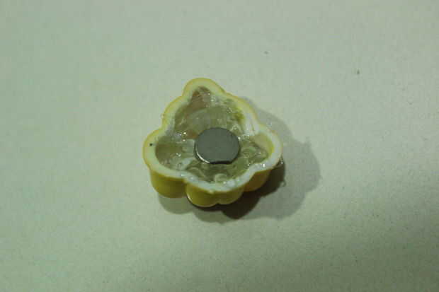 Cuando niveles suficientes han sido llenados, colocar el imán para que quede al ras con el borde de la cara (ver foto!)