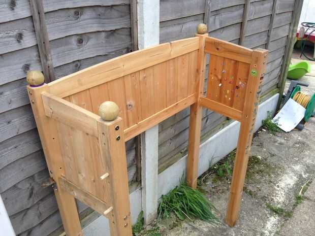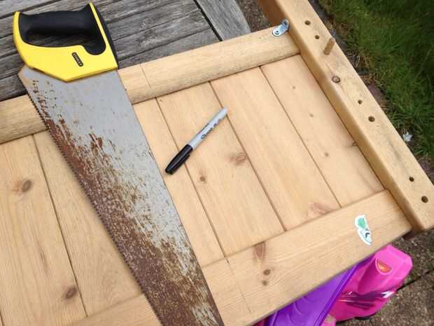 Primer paso es decidir lo ancho desea, luego medir la que volver desde el borde de las piezas laterales. No olvides también permiten el ancho de los postes traseros por lo que hacer las cosas bien. Me olvidé de mis primeras medidas y habrían terminado con una cosa que no cabe por la puerta del invernadero. Y no olvide usar el ángulo de su sierra para asegurarse de que su recto.