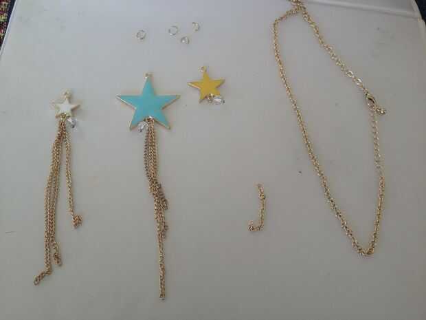 Usted de nuevo para tomar su vieja pieza aparte. Asegúrese de que no destruye la hebilla, cadena o cualquier salto anillos, necesita estos más adelante. Separe sus nuevas partes y piezas en pilas para que sepas lo que tienes que trabajar con.