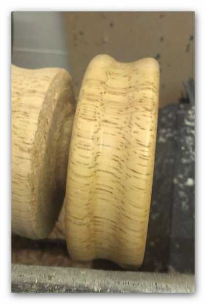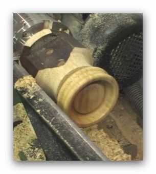 Luego separaron la base del stock restante teniendo cuidado de sostener la parte giratoria como la espiga posterior fue reducido 0 el último punto áspero fue quitado con papel de lija para permitir que la pieza permanezca uniformemente sobre una superficie.