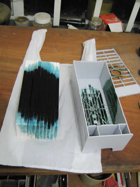 Quite el material absorbente que forra el interior con cuidado y deséchelo. Lo pongo en el calor de la composta que consiste en tejido. Enjuagar la caja de plástico y listo, tienes una caja de la herramienta práctica