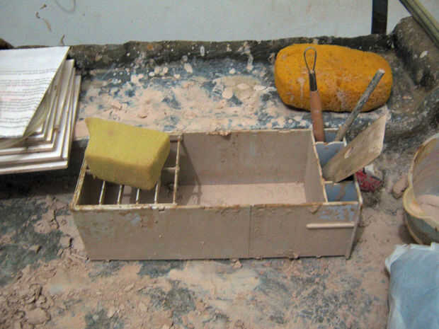 Una de las casillas usar mientras lanzando macetas. Corte media la rejilla que cubre y deja abierto el resto. Puedo llenar con agua, utilice la parte abierta para obtener el agua y la parte con la rejilla como una rejilla de goteo para mis esponjas. Los otros agujeros en la caja se utilizan para sostener varias otras herramientas. Su imaginación es su limitación y su verde.