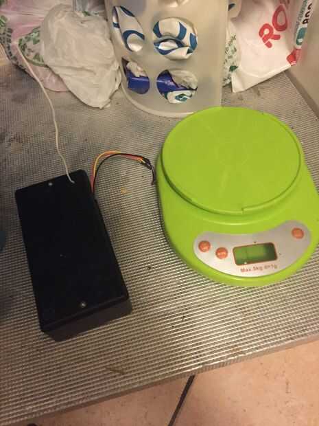 Ahora tome un objeto (un vaso, una manzana lo que se quiere) peso con una báscula de cocina y colocarla en la escala conectada en Arduino.