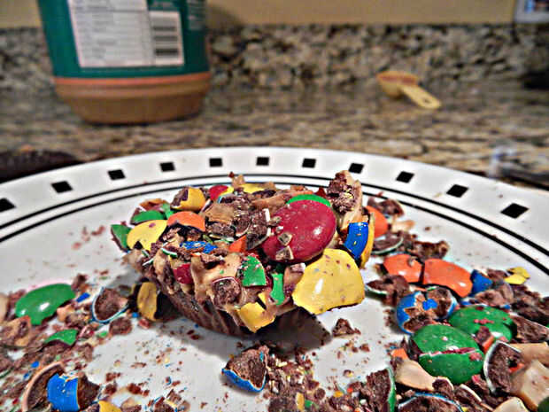 Recuerdo cuando mis padres compraron mi caramelo, probablemente has escuchado que algunos odontólogos comprar caramelos de los niños para $1 por libra pero mis padres me pagaran $2 por libra! Terminé con un extra de $10 en el bolsillo y no consumir demasiadas calorías. ¡ Fue impresionante! de todos modos, en este instructable, te voy a mostrar cómo hacer una taza de mantequilla de maní Reeses con M & M en la parte superior. Es muy delicioso! Aquí está una receta para "reciclar" tus dulces!