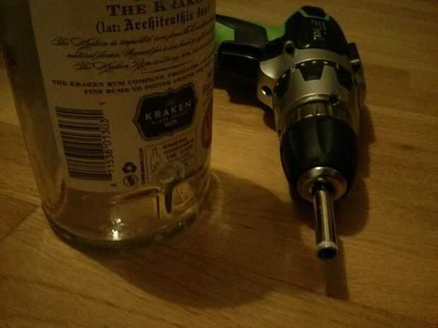 Reciclaje de una botella en una lámpara (1 / 4 paso)