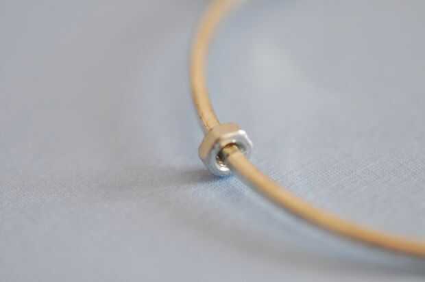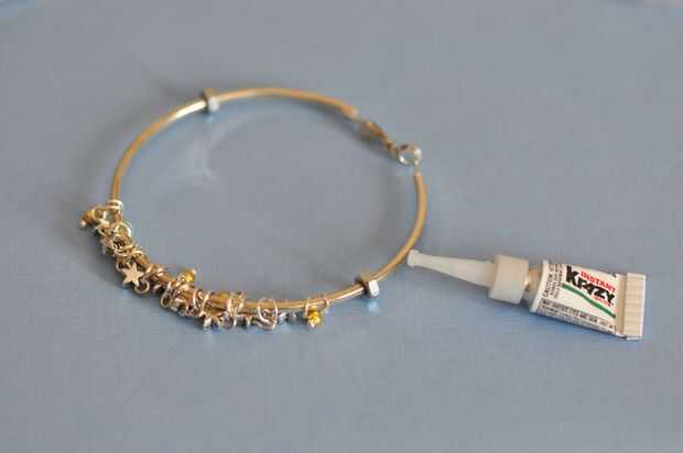 Ahora decide donde quieres topes para ser. Esto evitará que los encantos de todo desplazamiento al final de la pulsera y encuentro allí. Con cuidado, poner una pequeña cantidad de pegamento alrededor del brazalete en el lugar que quieres que el tope para ser. Deslice la tuerca hexagonal hasta ese punto. (No ¡ Muévete ya!) Deje que se seque antes de hacer lo mismo para la otra tuerca hexagonal. (Lo siento no pude ofrecer imágenes; es difícil tratar de pegar y tomar fotografías con una cámara super pesada al mismo tiempo)