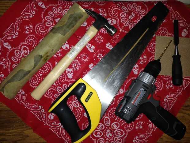• un grueso trozo de rama (cerca de 2,5 pulgadas de diámetro) que es 10-12 pulgadas de largo. La rama debe ser capaz de descansar cómodamente en un lado sin balanceándose de lado a lado.