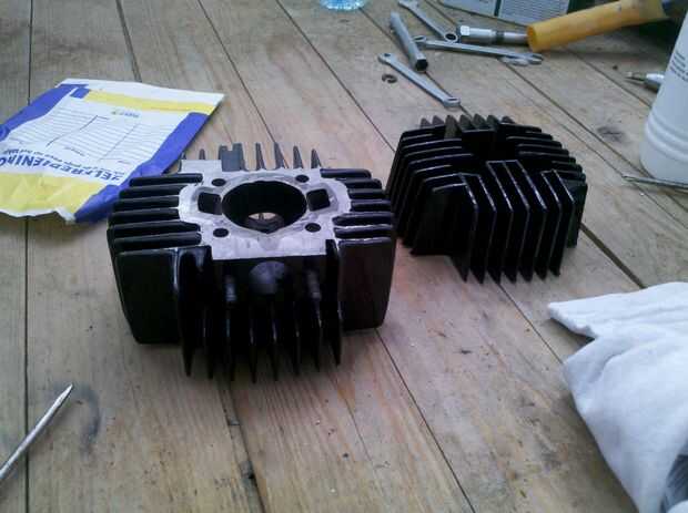 Decidí tot pintura del cilindro y la culata negra. En primer lugar, limpie toda la suciedad de