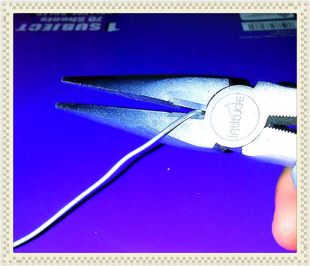 Utilizando el cortador de alambre, corte el área inicialmente sostenido por el pulgar. Coge un extremo del alambre y, usando sus alicates de joyería, hacer un lazo. Este lazo debe tener las cuentas en última instancia decide incorporar en su pulsera.