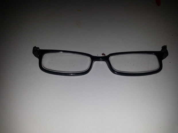 * Romper los brazos laterales de las gafas de lectura en las articulaciones. He encontrado que una combinación de flexión y torsión es mejor manera de quitar los brazos de lado sin mis manos. Estructura metálica, es necesario cortar con una pinza de metal. Mejor aún, es encontrar viejas gafas rotas.