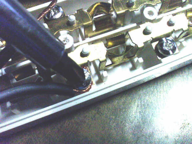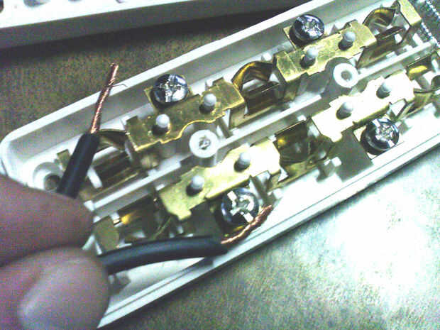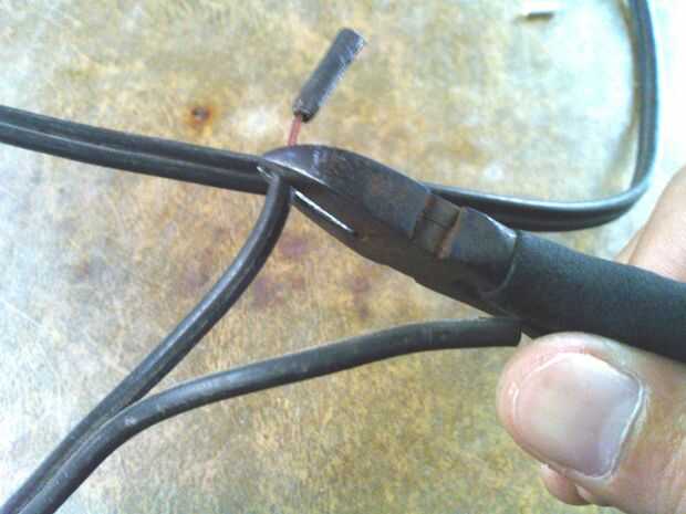 Sujete ambos extremos del cable plano cortadas en los tornillos