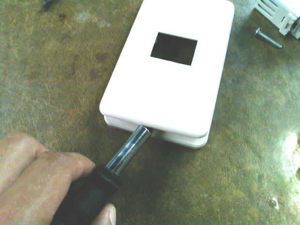 Coloque la parte inferior de la placa de la pandilla en la caja del PVC