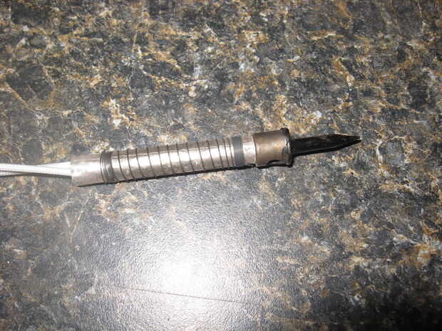 Obtener una antigua punta de soldadura y corte exactamente alineados en la parte superior del elemento de calor, como se ve en la ilustración siguiente fotos en aquí.Paso 1: Para requisitos particulares caliente de cuchillo. Corte una raja en la punt