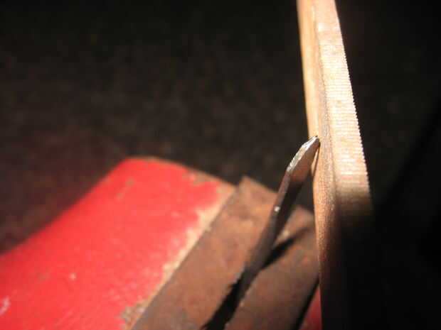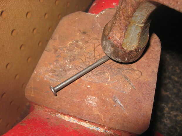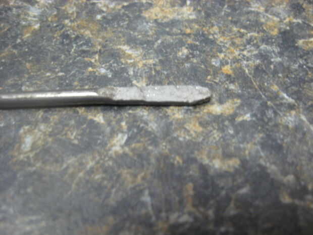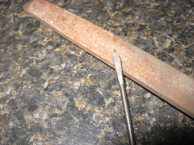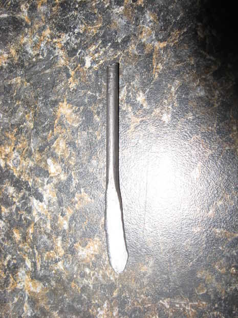 La hoja, basta con echar un clavo (con un eje lo suficientemente pequeño como para caber en la punta desprendible del calentador, si tiene una punta desprendible) cortó la cabeza de la uña (yo usé una sierra para metales) y un martillo la punta para conseguir planos. Una vez que esté lo suficientemente plano puede tomar un archivo y empezar a afilar a un lado (también presentó hacia abajo la punta por lo que no sería tan aguda, generalmente no necesita una punta muy afilada de todos modos). Una vez que se forma la punta deseada entonces puede mover.