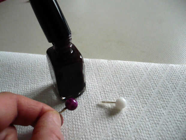 Se elije un color apropiado de esmalte de uñas. Con el mismo pincel del esmalte se pinta el pendiente. Dependiendo de la cantidad se aplique, y gracias a la superficie esta muy es, se consiguen unas formas muy bonitas en el color del pendiente. Logicamente, si el resultado no te gusta, se puede quitar y probar de nuevo.