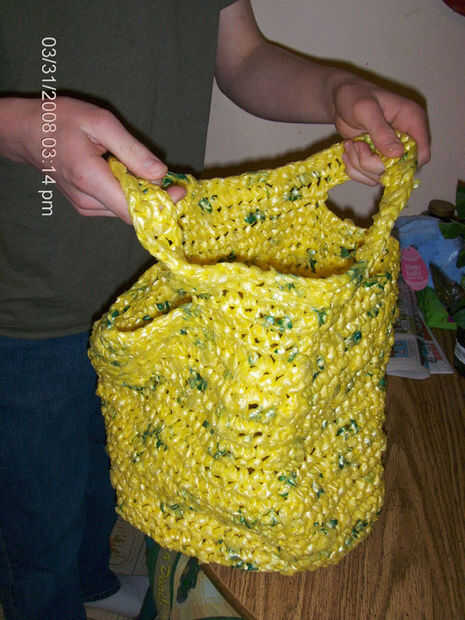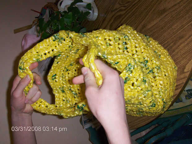 Yo ganchillo mi ronda hasta que tenía 64 puntadas alrededor. Yo entonces seguí ganchillo los 64 puntos en la ronda hasta que quise hacer mis manijas.