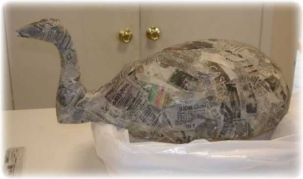 Como construir las capas extra que usted puede "llenar" cualquier bultos, protuberancias o sumerge en su forma añadiendo capas adicionales de periódicos de forma selectiva. Necesito construir la cabeza de mi loon y cuello como es demasiado pequeño en el momento, y puedo hacerlo utilizando estratégicamente las piezas de desecho de cartón pegada con cinta de enmascarar y luego taparse con la mezcla de periódico y pasta. Incluso puedo cojín la parte cabeza y el cuello hacia fuera con bolsas de plástico extra y volver a la cinta, etc., hasta conseguir una forma con que estoy contenta.