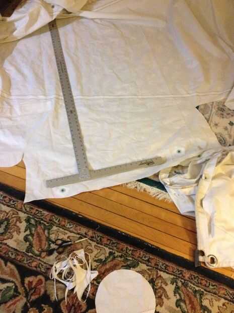 Después de realizar los cálculos, cortar dos rectángulos de tela que son de la longitud medida. El ancho de estos rectángulos es suya, su anchura se componen el ancho de la bolsa misma. Hice mío para ser aproximadamente 28,25" por 16".