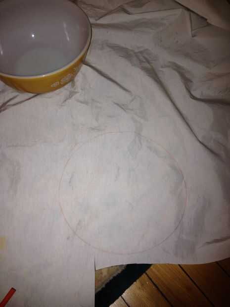 A continuación, llegar a hacer algunos cálculos. Doble uno de los círculos por la mitad y, a continuación, mida la longitud del borde recto creado por hacerlo. Luego, multiplicar esta medida por 3.14. Esto le dará la longitud de los rectángulos que componen la parte principal de la bolsa. En mi caso, corte con un 9" de diámetro, por lo que terminé con una longitud de aproximadamente 28,25 pulgadas. Es mejor a subestimar ligeramente esta medida que to lo sobrestiman.
