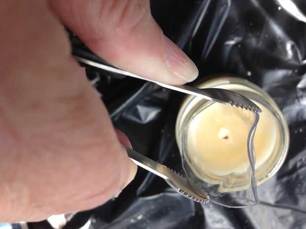 Con una vela encendida, mantenga cada círculo plástico al calor de la llama y mueva con cuidado el plástico, rizos hacia arriba o hacia abajo. No olvide obtener el plástico demasiado cerca a la llama. Pinzas pueden utilizarse para ayudar a sostener y formar el plástico en pétalos.