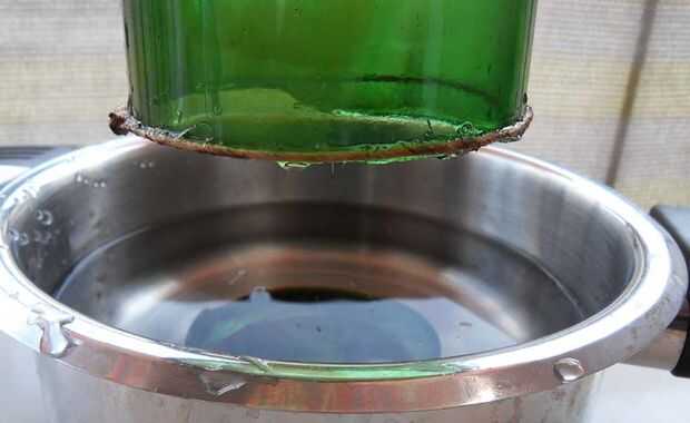 O.k., pero ahora con el espectáculo: consiga el recipiente y llenar con agua fría, si tienes te puede poner un poco de hielo dentro, pero mantienen liquide! ;-)