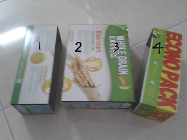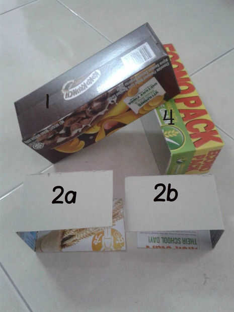 Corte la caja de cereal en 4 lados. Deseche el lado 3.