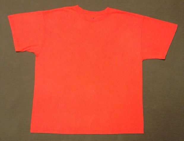 Imagen #1.) Ponen una camiseta, boca arriba, sobre una superficie plana, como una tabla. Una mesa de altura es especialmente útil, por lo que no tienes que permanecer en una posición de agachado durante largos períodos de tiempo. Suavizar las arrugas y líneas, tomarse el tiempo para que sea agradable y ordenado, lo pagará. Alinee el borde delantero y trasero en la parte inferior de la camiseta. No tiene que ser perfecto, pero intente conseguirlo alineado lo mejor pueda, esto le dará más hilo de camiseta en el final. Luego suave hacia arriba, a las arrugas alisando a la tela a medida que avanza.