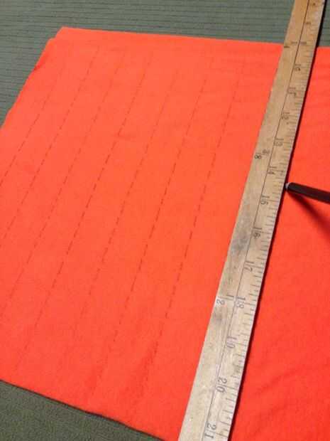 * Si ya no ha leído la sección en paso 1 y 4 con respecto a reglas o cinta de medir, por favor hágalo ahora. Están a punto de cortar la tela y debe decidir sobre el espesor resultante, determinado por la anchura del dispositivo de medición / stick.