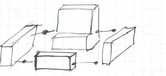 Estas tres sillas reducidas de mi Original adulto silla de Adirondack, pero construidas a partir de (13 mm) 1/2" o 5/8" (7.5 cm) cedro cerca las placas con tornillos de latón y tornillos. Proporcionalmente curvado asiento y respaldo permite a su