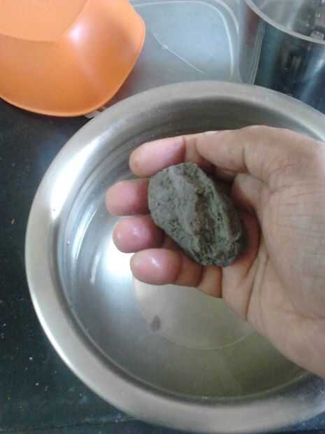 Sacar la pulpa y hacer pequeñas briquetas a mano. Lo hice a mano. Puede utilizar algunos modeladores que las hacen lucir bien.