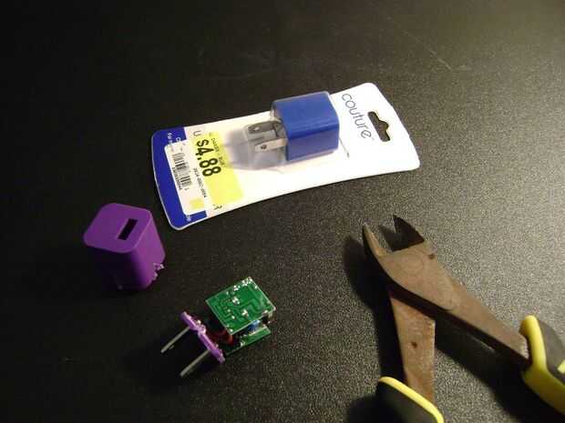 Encontré estos cargadores usb pequeño a la venta en Walmart. Parece al mi esposa utiliza para cargar su iPhone. Aunque yo prefiero Android, no quiero destruir su cargador por lo que he comprado estos. Compré 2 porque no estaba segura si sería capaz de hacer estallar el caso aparte sin romper los circuitos dentro. Me las arreglé para hacerlo bien la primera vez aunque :)