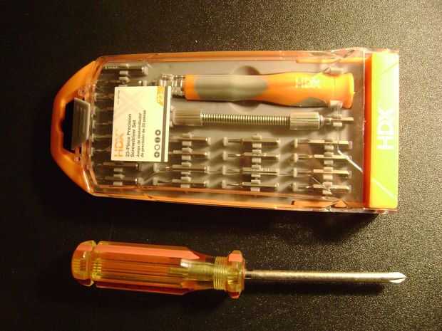 Destornillador de cabeza Phillips (2 tamaños) - un tamaño minúsculo para quitar los tornillos de la cajas. Tamaño medio a grande para quitar la placa base y montar un puerto USB.