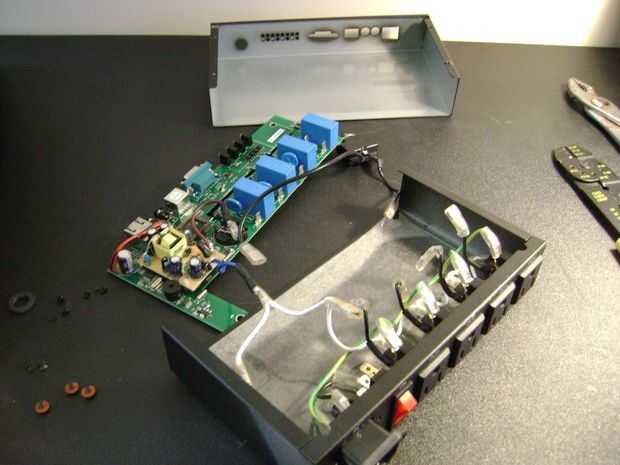 Exactamente como suena. No tomo el tiempo para averiguar por qué este dispositivo no estaba funcionando, pero no me importa tampoco. Esta caja regulable por un Raspberry Pi suena como una idea mejor. Hay 4 tornillos pequeños en la parte inferior que sujetan la caja juntos, 1 de ellos cubierto con una pegatina que anula la garantía si quita (si hubo incluso una garantía de nada). Retirar y el caso se deslizará fácilmente aparte. Usted también necesitará quitar la tuerca de plástico que sostiene que el poder restablece el fusible en su lugar.