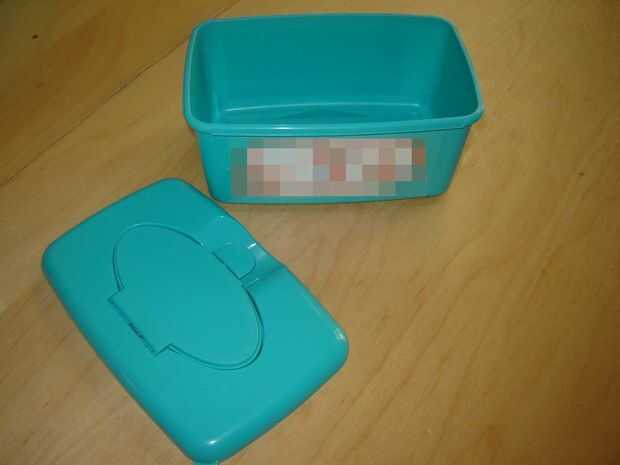 Si su envase de toallitas tiene pegatinas de marca de fábrica, puede eliminarlos con cuidado en este punto. Si no son removibles, usted siempre puede cubrirlas con impreso una etiqueta más tarde.