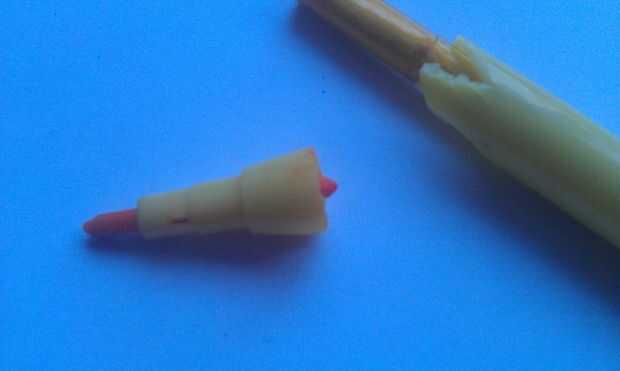 Romper el rotulador. Rompió justo a hasta que la punta fue sobresaliente en ambos extremos