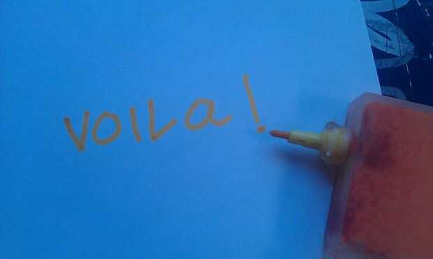 ammends: pensé que si no rompen tanto del marcador pude poner una tapa sobre ellos para evitar que se sequen. Podría utilizar base suave original del marcador para dibujar la tinta a la punta. Intentaré la próxima vez. Estaba pensando también se puede utilizar cualquier avispado, como cepillo de plumas o plumas viejo / rollers, incluso combinar los cartuchos en la punta para obtener mezclas de diferentes colores...