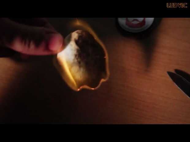 uso el disco de algodón porque esto es realmente sencillo hacer fuego, abrir uno en dos partes y puesto en el suelo, después uso un cuchillo para crear un brillo encima de algodón, después de pocos segundo (y después de varios intentos) usted puede ver el brillo difuso en el disco de algodón.