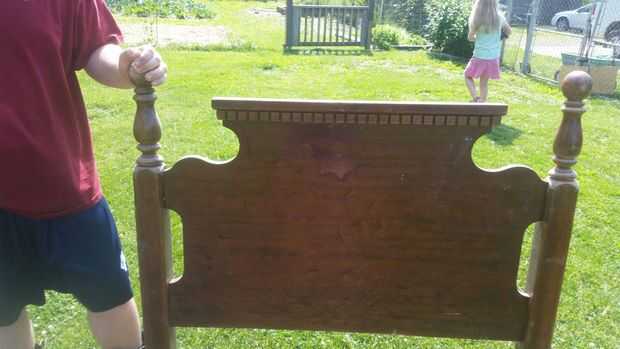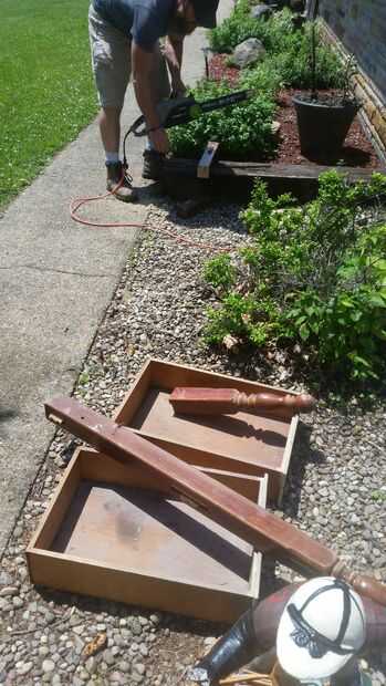 A continuación, se utilizó un viejo cabecero para las piernas. Mi marido cortó los postes en secciones de 9 pulgadas y uniformar entonces hacia fuera con la Sierra de mesa.