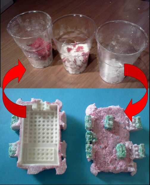 Pero usted puede ahorrar aún más dinero Si reciclas tu oogoo restos de moldes oogoo viejo o insatisfactorio que no necesita más. También se puede reciclar todos lo oogoo de "residuos" que se acumula en su mesa, cucharas y tazas cuando se mezcla la silicona con maicena para hacer oogoo.
