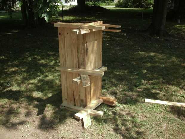 Ahora, es el paso más complicado de todos. Use madera pasado, excepto los dos para cubiertas que serán el siguiente paso. PERO necesita la madera para que coincida con el perno prisionero y la tierra por la corte en grados de la línea. Los vieron en cuatro piezas. Encolar y clavar a cada postes en la parte posterior. Ahora, usted tiene patas traseras sobre todo la estabilidad para que no caiga hacia atrás cuando usted se inclina hacia atrás.