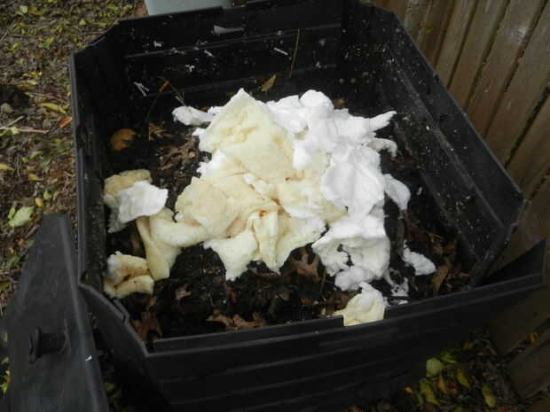 Recuerde que este material es muy absorbente - si su pila de compost está seco, se puede mezclar el material del pañal en la capa superior de compost con un spray rápido de la manguera (cuidado de no salpicar por todos lados)
